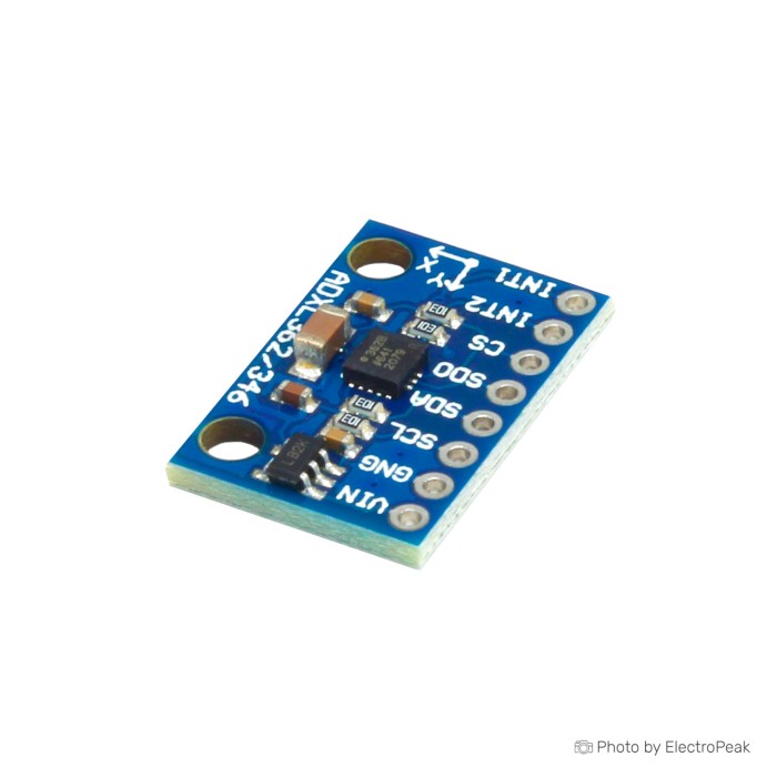 The ADXL362 3-Axis Digital Accelerometer Module is an ultra-low-power accelerometer designed for applications requiring high precision and efficient energy usage. It supports motion-activated wake-up modes, adjustable thresholds, and autonomous interrupt processing for system-level power savings. The module features wide voltage compatibility, a high-resolution output, and a built-in FIFO to minimize processor load, making it ideal for wearable devices, motion sensing, and energy-efficient designs.