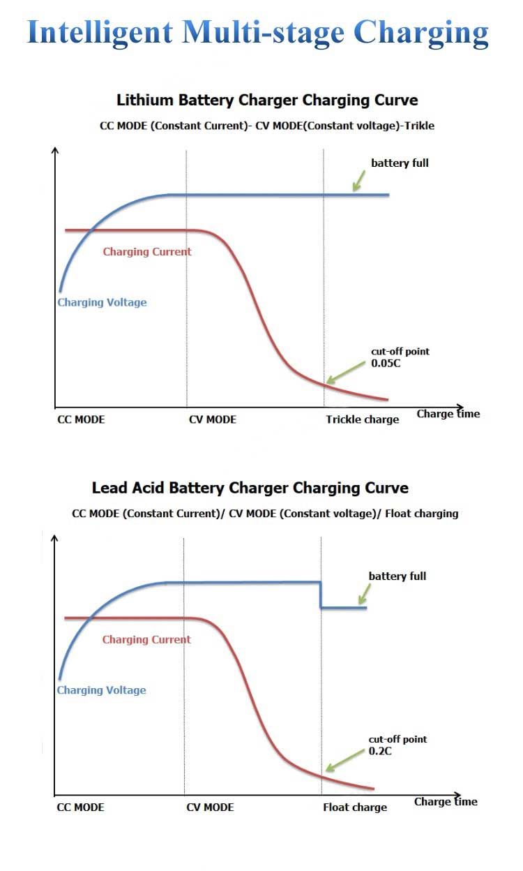 Once the battery voltage reaches the preset level, the charger switches to constant voltage mode. During this phase, the charger maintains a steady voltage while allowing the current to decrease. This prevents overcharging and protects the battery from potential damage.