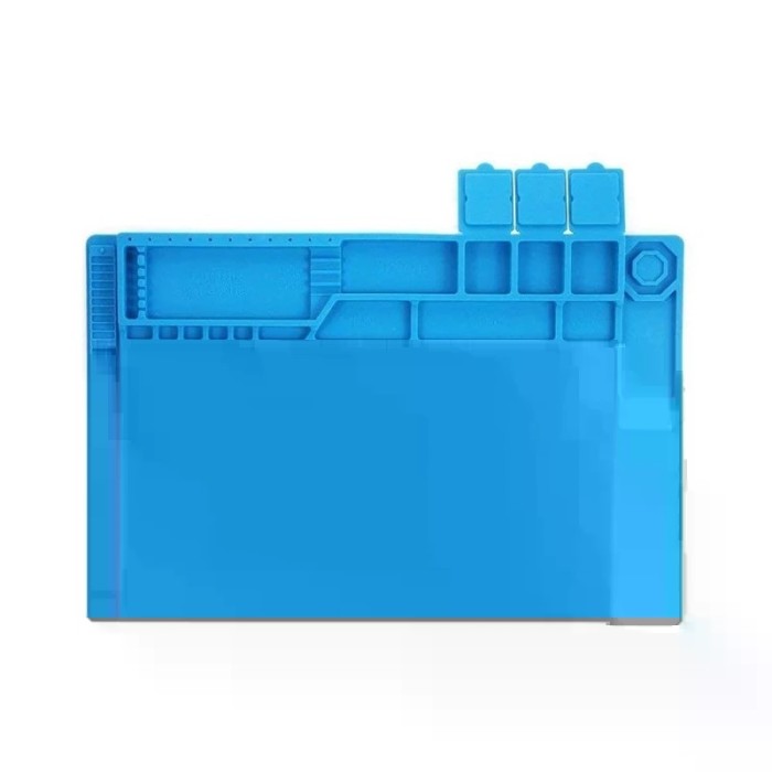 The S-160 Silicone Soldering/Repair Magnetic Mat is a durable, heat-resistant work surface designed for electronics assembly and repair. With a working temperature tolerance up to 500°C, built-in scale ruler, multiple screw positions, and covered part boxes, it keeps your workspace organized and safe. Ideal for repairing smartphones, laptops, cameras, watches, and other precision electronics.