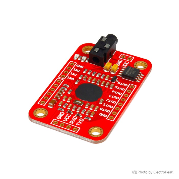 Voice Recognition Module is a compact and easy-control speaking recognition board. This product is a speaker-dependent voice recognition module. It supports up to 80 voice commands in all. Max 7 voice commands could work at the same time. Any sound could be trained as command. Users need to train the module first before let it recognizing any voice command.